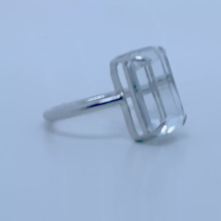 Anillo en oro blanco 18 K ley 750 con aguamarina de 6,6 ct