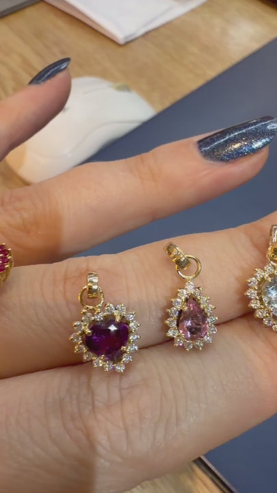 Dije corazón aguamarina y moissanitas