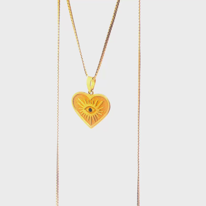 Dije corazón ojo turco Oro amarillo y zafiro central.